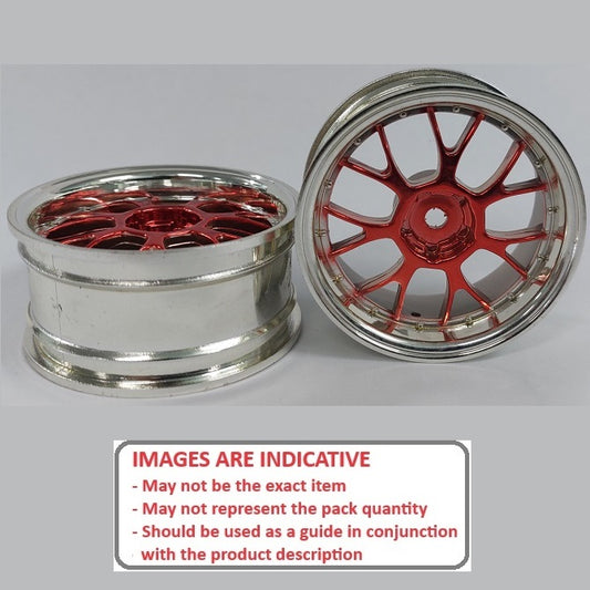 RC Car Rims Hobby - Rim Colour Red 5 Split Spoke Tenth Scale - Plastic Rim 1 pack (2 pcs) Available Now | Item Discontinued - Up to 1 may be ordered online. No backorders. Please contact us if you need a larger quantity Regular price