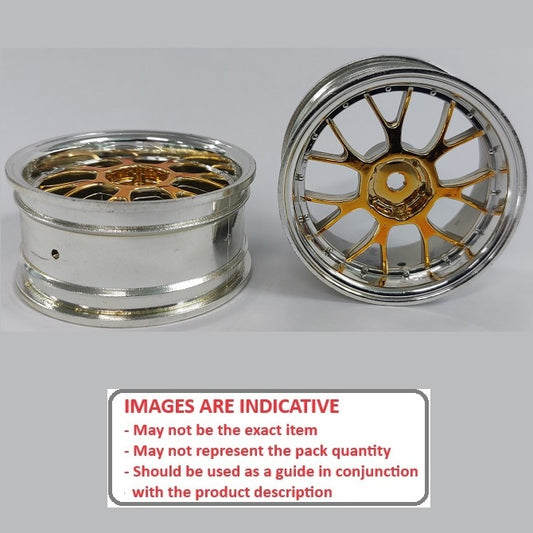RC Car Rims Hobby - Rim Colour Silver with Yellow 7 Fork Spoke Tenth Scale - Aluminium Rim 1 pack (5 pcs) Available Now | Item Discontinued - Up to 1 may be ordered online. No backorders. Please contact us if you need a larger quantity Regular price