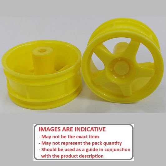 RC Car Rims Hobby - Rim Colour Yellow 5 Solid Spoke Tenth Scale - Plastic Rim 1 pack (2 pcs) Available Now | Item Discontinued - Up to 1 may be ordered online. No backorders. Please contact us if you need a larger quantity Regular price