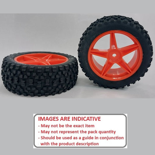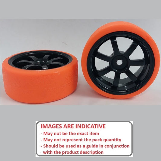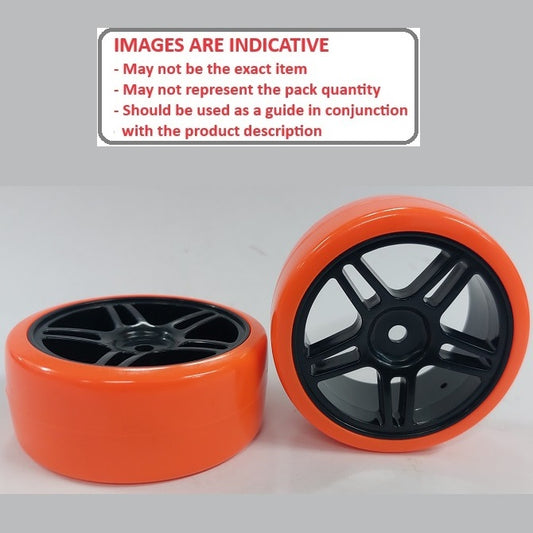 RC Car Wheels Hobby - Rim Colour Fluoro Orange 5 Spoke - Black Tenth Scale - Plastic Wheel 3 units (6 pcs) Available Now | Item Discontinued - Up to 3 may be ordered online. No backorders. Please contact us if you need a larger quantity Regular price