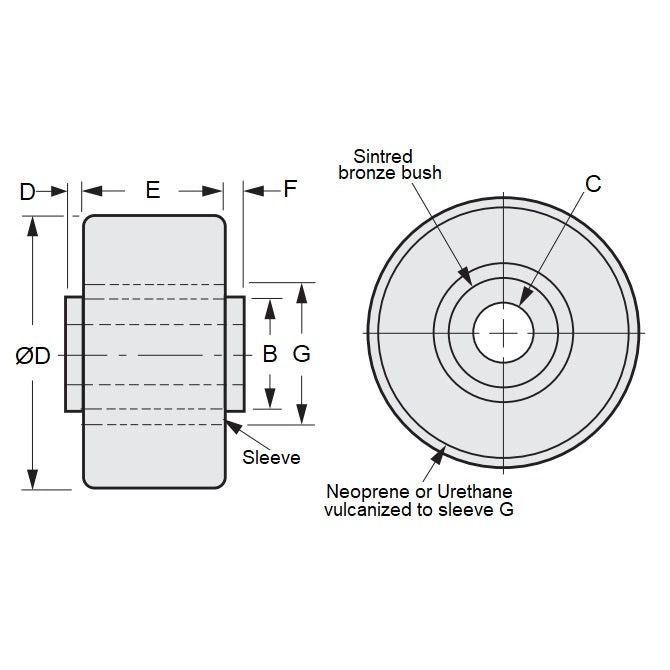 Top Level Category: Rollers - Idler with Bearing - Urethane With Plain Sintered Bearing