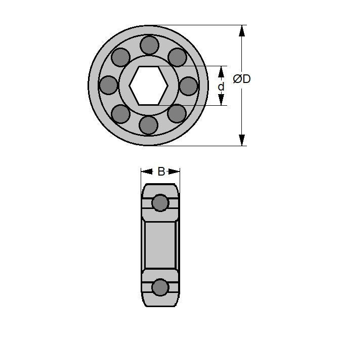 Pool Equipment Bearings - Hex 5.56 22.23x7.14 mm - Acetal Bearing